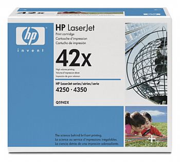 Cartucho de toner HP 42X Q5942X Preto, utilizado nas impressoras LJ 4250/ 4350; Rendimento aproximado: 20.000 páginas.