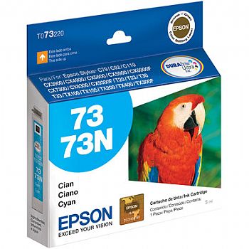 Cartucho de tinta EPSON 73 T073220 5 MLS Ciano, para impressoras EPSON T23/ TX200/ TX400/ Stylus C110/ CX4900/ CX5600/ CX5900/ CX7300; Rendimento aproximado: 350 páginas.